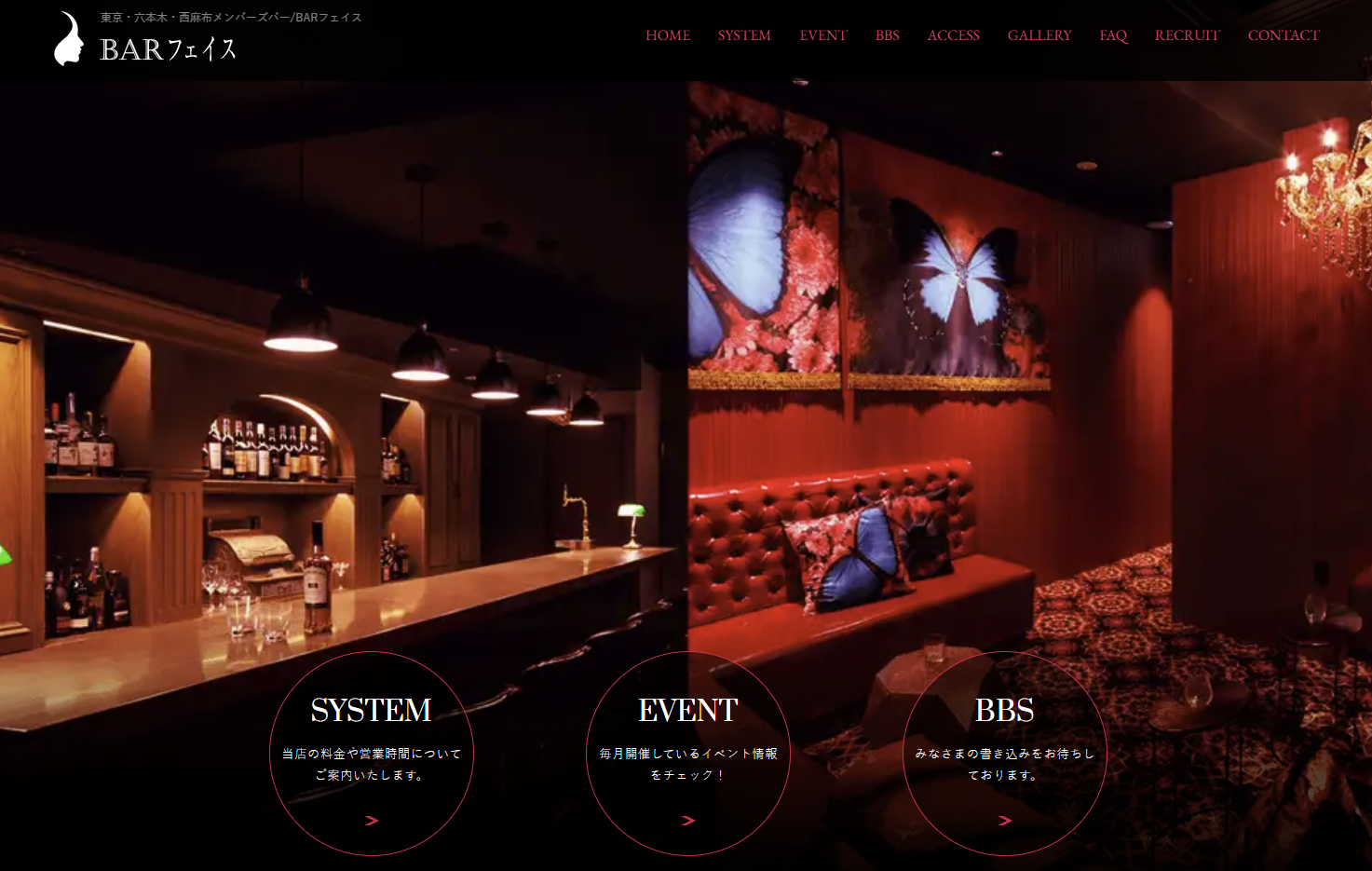 BARフェイスは、六本木駅2番出口からすぐの位置にあるしっとりと1対1でコミュニケ―ションを楽しめるタイプのハプニングバー。